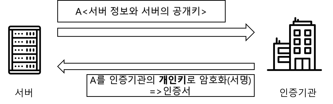 사전에 인증기관(CA)과 사이트(서버) 사이에 서버는 SSL 인증서를 발급받기 위해