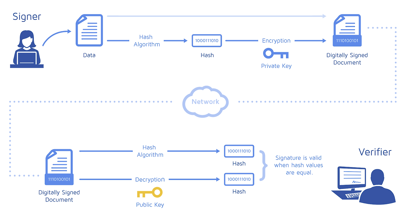 데이터를 송신자가 작성했음을 보장하고, 데이터가 변조되지 않았음을 증명