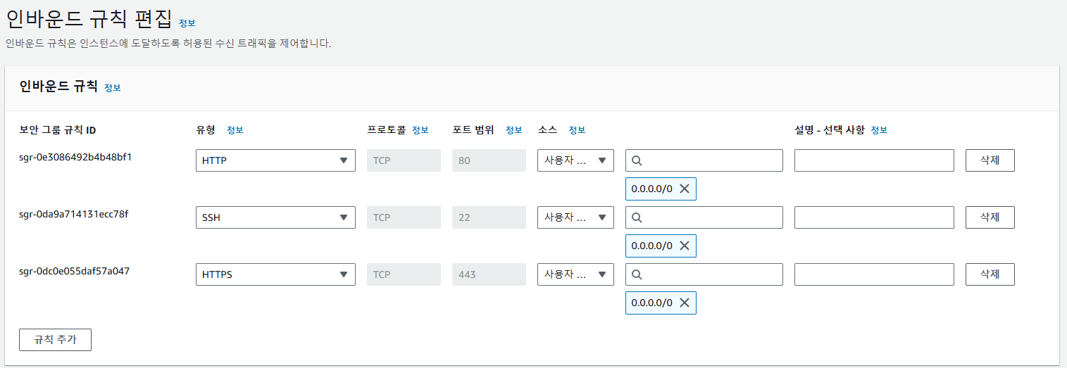 1. EC2의 SG를 확인한다. (인바운드 규칙에서 https ,http 허용)