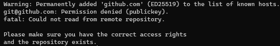 SSH키가 제대로 설정되지 않아서 뜨는 오류 메세지이다.