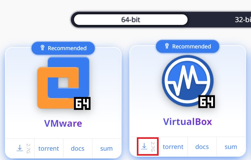 자신이 설치한 가상머신(Vmware 혹은 Virtualbox)의 다운로드 버튼을 누른다.