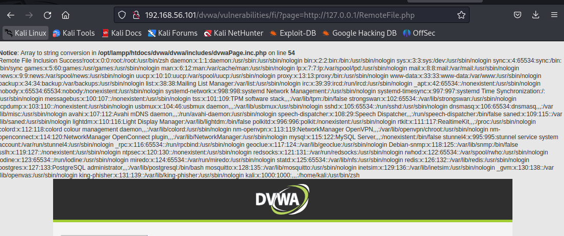 파일이 실행되어 "Remote File Inclusion Success!" 출력된다.