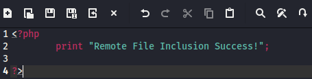 "Remote File Inclusion Success!" 이라는 문자가 출력되는 PHP 파일을 만들고 웹서버에 파일이 잘 실행되는지 확인한다.